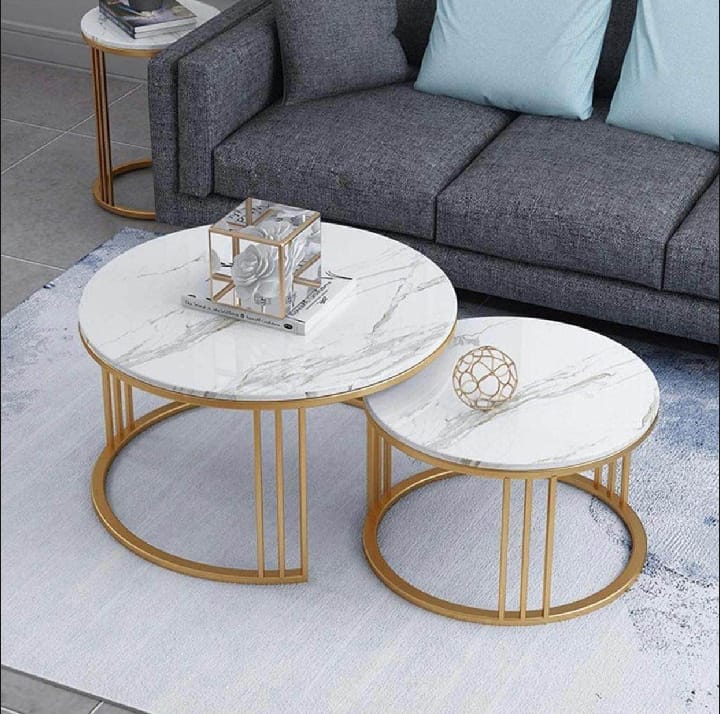 Set of 2 Tables Nesting Coffee Table Round Table Side Table with Living Room